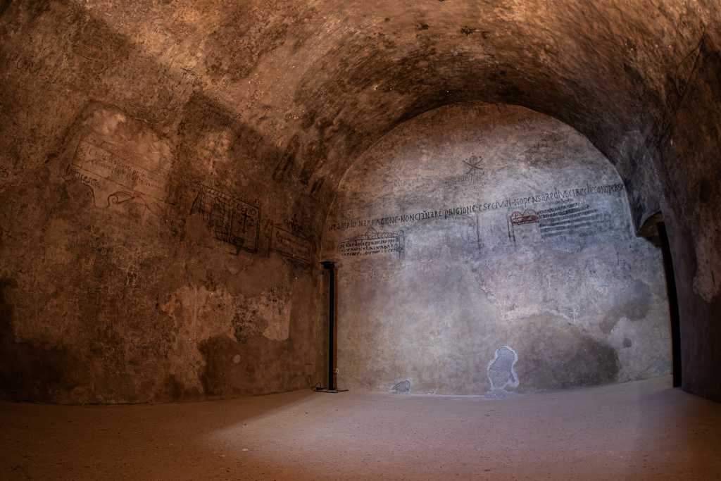 Alcuni graffiti, ancora visibili, offrono oggi una testimonianza tangibile della storia drammatica del maniero e dell’esperienza dei detenuti, rappresentando un documento diretto della vita nel castello durante uno dei periodi più difficili della sua storia.