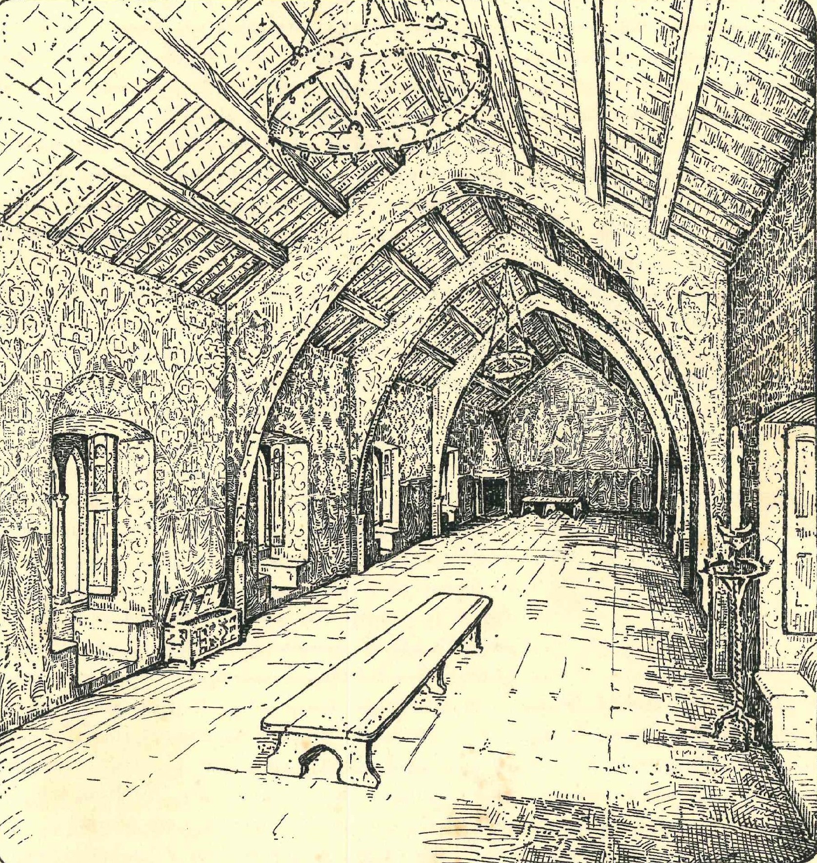 Fin dalla sua costruzione, la grande sala ebbe la funzione di sede per la riunione del popolo; vi si accedeva dal cortile interno (l’attuale piazza D’Armi) e secondo gli statuti conteneva la curia dove si riuniva la corte formata da giudice, scriniario e notai.