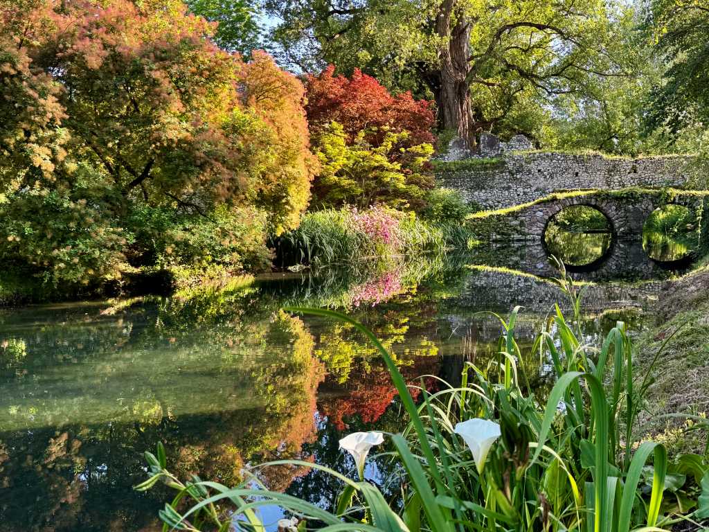 Auf den Überresten der mittelalterlichen Stadt Ninfa dehnt sich der Garten von Ninfa aus.