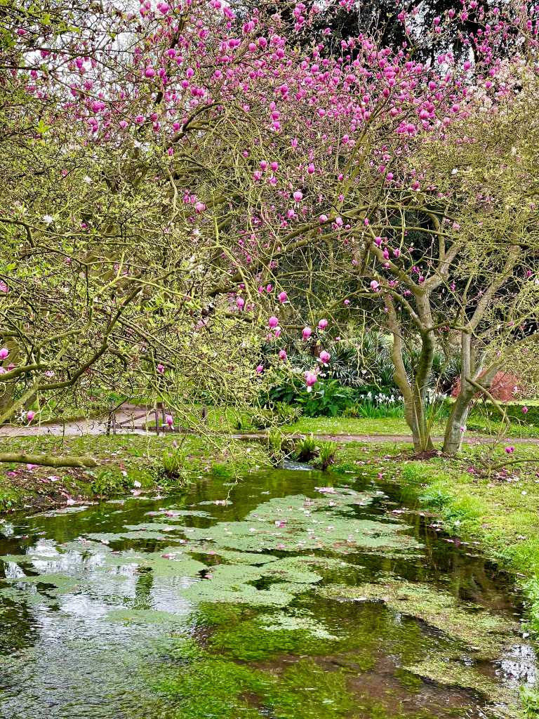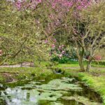 Heute befinden sich über 1300 botanische Arten in diesem Garten, darunter Magnolien, Prunus und Kletterrosen, mit Bächen und Teichen, die Türme, Kirchen und mittelalterliche Mauern umgeben.