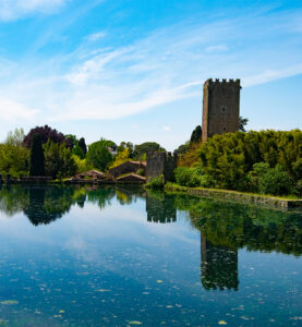 El Giardino di Ninfa se alza sobre las ruinas de la ciudad medieval de Ninfa, cuyo nombre procede de un templo romano dedicado a las divinidades del agua.