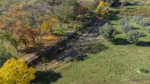 La strada basolata arriva fino alla Porta Maggiore e prosegue oltre, all’interno della città.