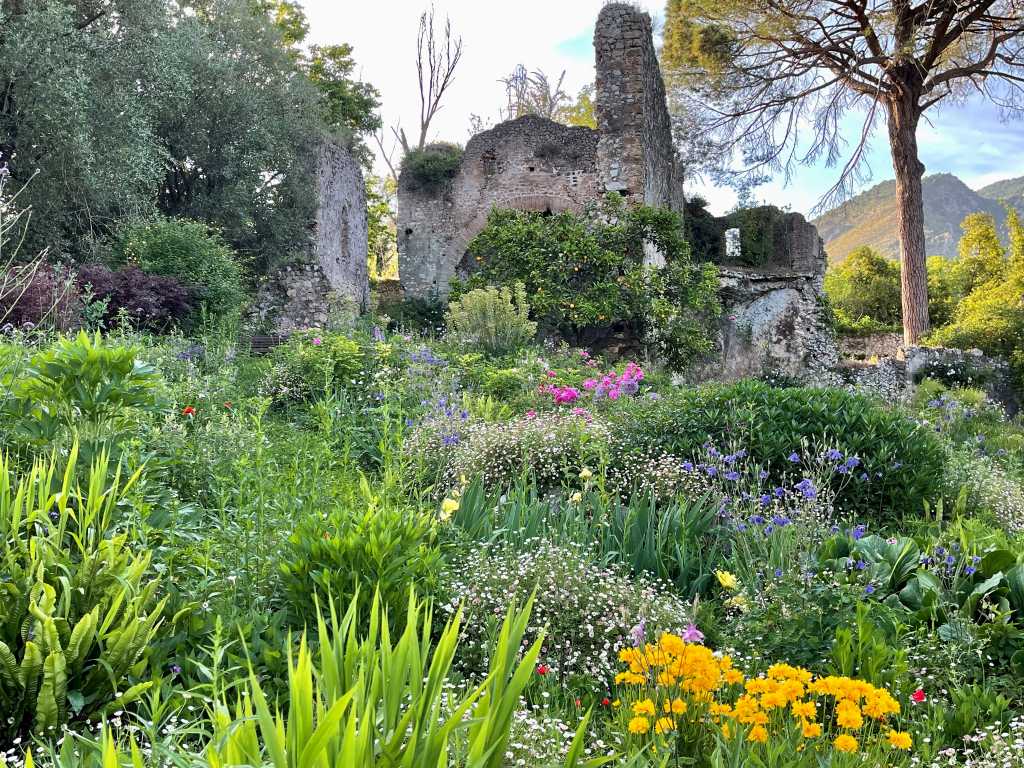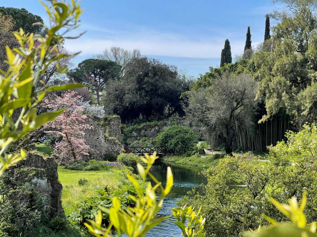 Il Giardino di Ninfa sorge sulle rovine della città medievale di Ninfa, il cui nome deriva da un tempio romano dedicato alle divinità dell’acqua. Fiorente tra l’XI e il XII secolo sotto famiglie nobili come i Tuscolo e i Frangipane, la città fu poi acquisita nel 1298 da Benedetto Caetani —noto come papa Bonifacio VIII— per il nipote Pietro II Caetani.