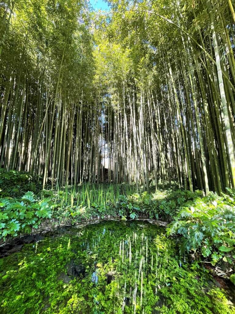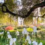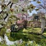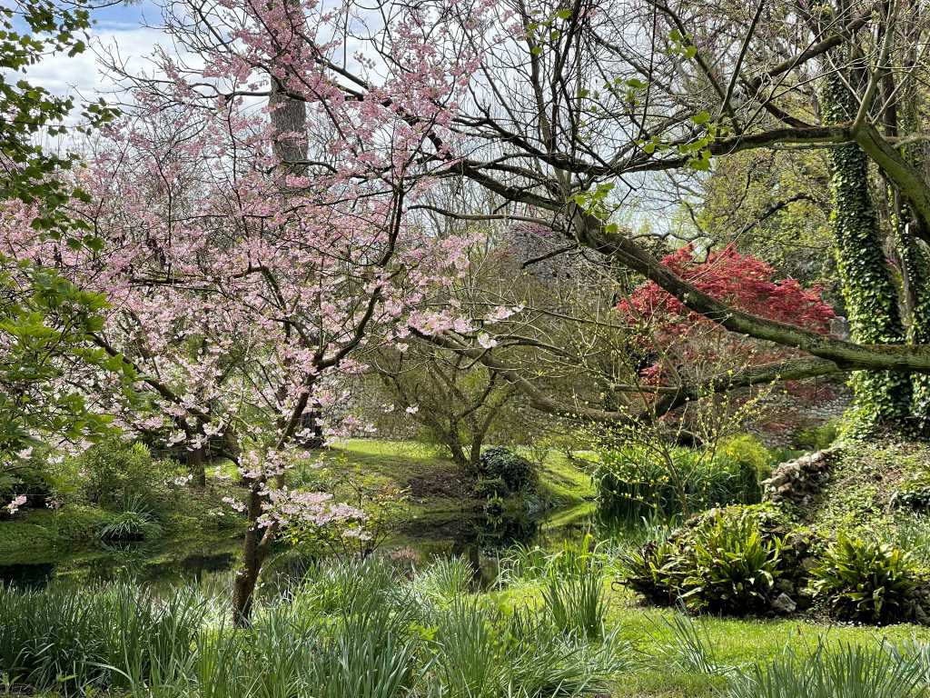 Oggi il giardino ospita oltre 1.300 specie di piante —tra cui magnolie, prugne e rose rampicanti—, mentre ruscelli e stagni si snodano attorno a torri, chiese e mura medievali.