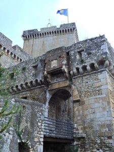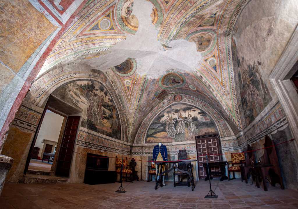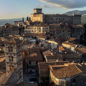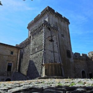 Il Castello di Sermoneta è una delle più imponenti fortificazioni medievali del Lazio, costruito a metà del XIII secolo dagli Annibaldi come rocca militare in posizione strategica tra Roma e Napoli. La struttura originaria comprendeva il Maschio, una torre in origine organizzata su quattro livelli e con un’elevazione maggiore di quella attuale, e la contro-torre ad esso affiancata detta il Maschietto e un grande edificio adiacente di cui restano solo le fondazioni.